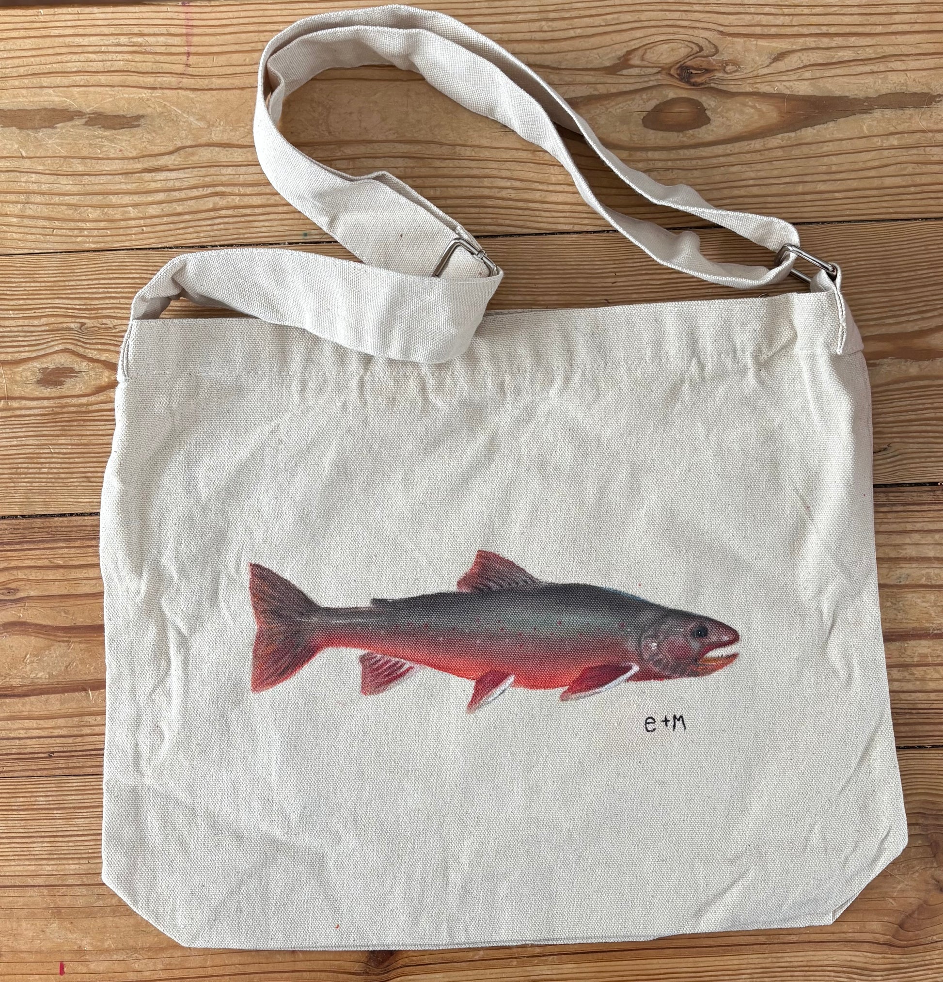 Hand painted arctic char project tote